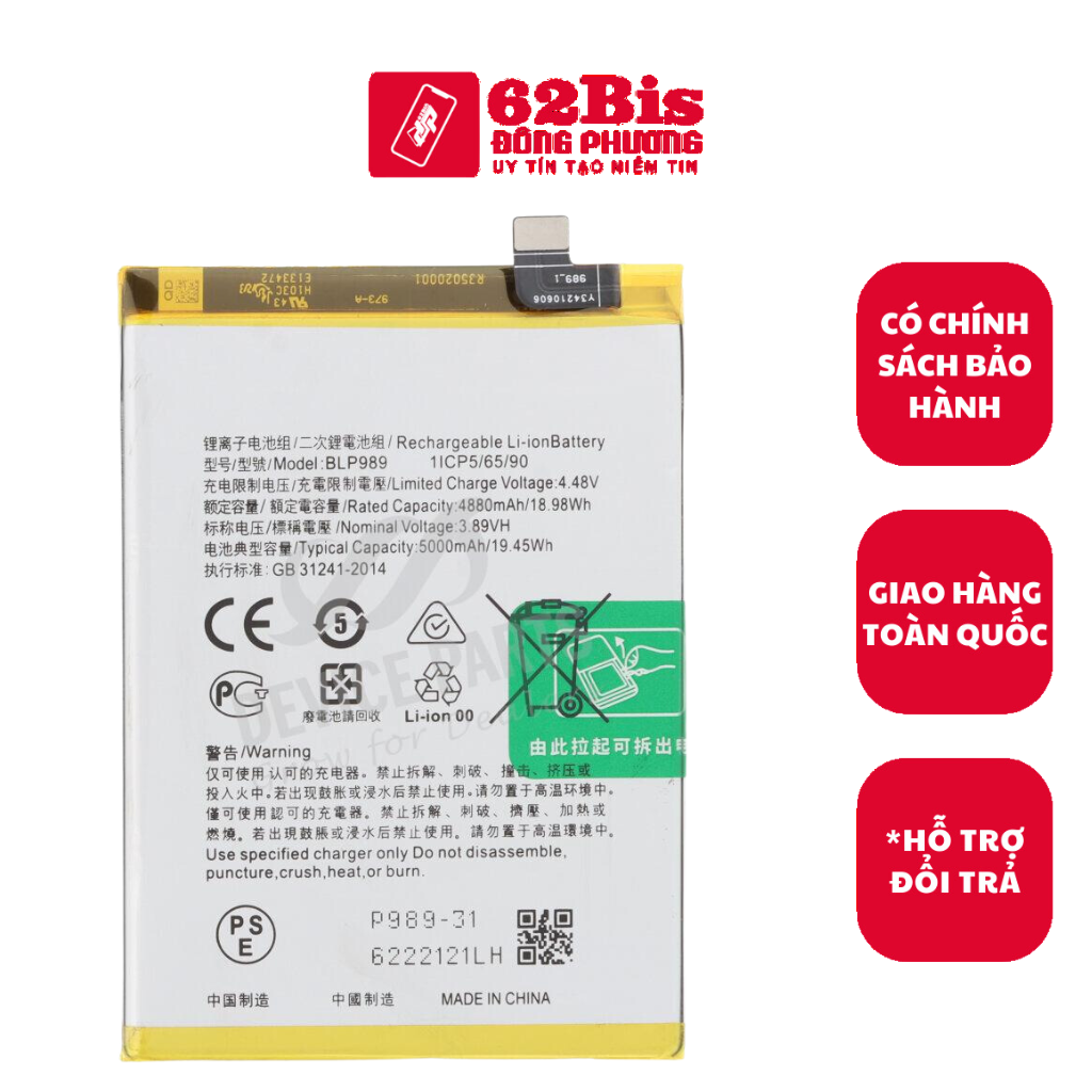Pin Oppo BLP989 / A98 / F23 / One Plus Nord CE3 của quý khách đang gặp phải các vấn đề như pin tuột nhanh, xài nhanh hết pin, chai pin , sạc không lên %,... cần được thay thế, sửa chữa. Nhưng vẫn chưa kiếm được địa chỉ đáng tin cậy. Đến ngay Linh Kiện 62 Bis Đông Phương để được cung cấp Pin Oppo BLP989 / A98 / F23 / One Plus Nord CE3 ,giải pháp tốt nhất, giá cả hợp lý , và chất lượng đảm bảo.